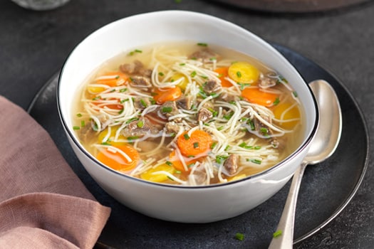 Der Wiener-Klassiker nach altbewährtem Rezept: Traditionelle Rindsuppe mit Nudeln, Gemüse und Rindfleisch
